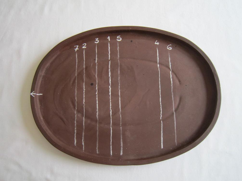 Un trait à la craie est dessiné dans le pot à 9,75 cm du bord de référence