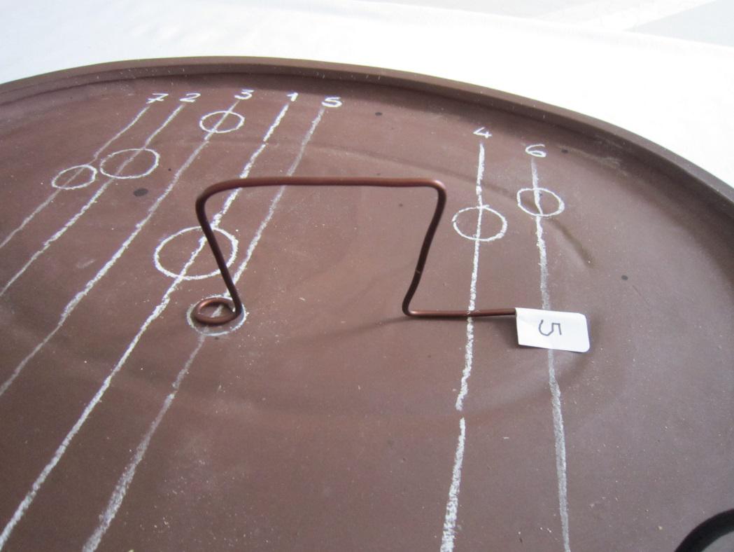 Préparer les fils d’attache des arbres (diamètre en fonction de la taille de l’arbre) les repérer avec le numéro de l’arbre. Ne faire qu’une boucle à la base, la partie verticale doit être bien perpendiculaire à la base